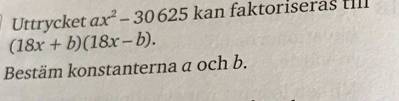Ska jag göra 18x2 - b2 och sedan göra ett ekvationssystem så att ax2 - 30625 = 18x2 - b2, eller ska jag göra det på ett annat sätt?