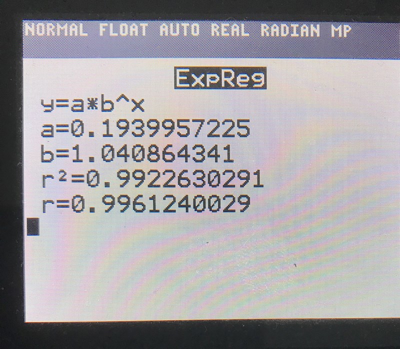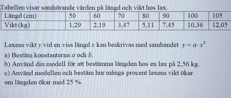 om vara y=1,29 då x=50 men hur hitta a och b??