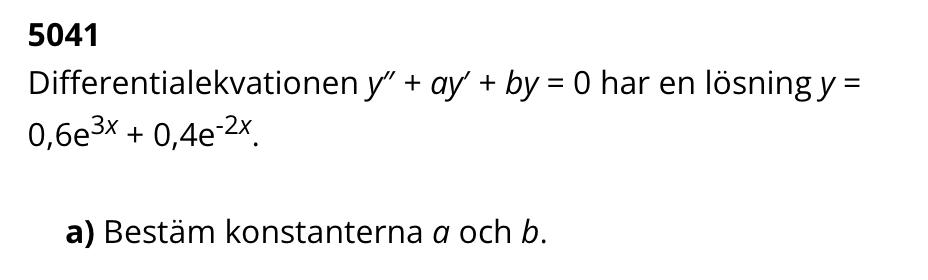Bestäm konstanterna a och b i en differentialekvation i andra ordningen