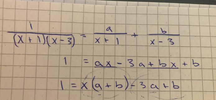1=x(a+b)-3a+bInga x i VL --> vi vill ha noll stycken x --> 0=a+b