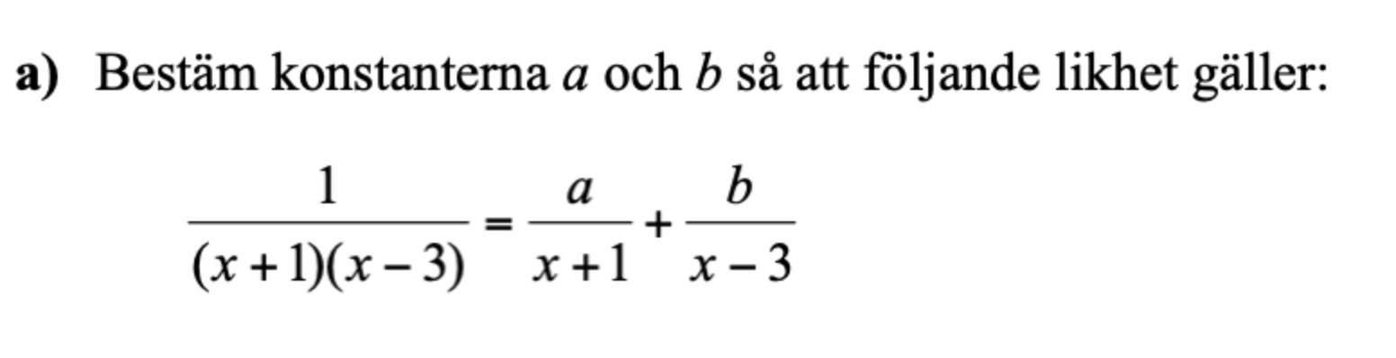 a) För att detta skall gälla för ALLA x måste a+b=0 (så att x:en försvinner)