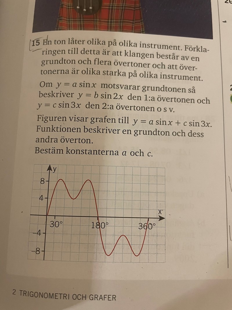Du behöver läsa av funktionsvärdet i två lämpliga punkter, t.ex x = 30° och x = 90°.