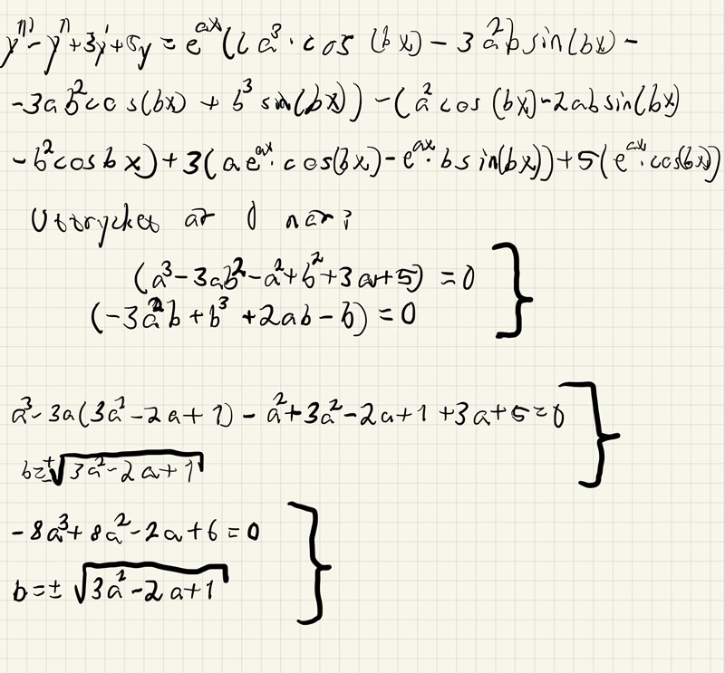 Alternativet är att derivera den givna funktionen 3 ggr, sätta in funktionen och derivatorna i diffekvationen och identifiera konstanterna. Inte så enkelt, det heller, men det är vad det står i uppgiften att du skall göra.