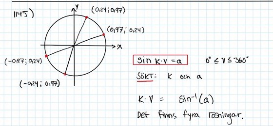 Superkemisten skrev:Jag vet inte hur man ska bevisa det. Jag tänker bara att det finns fyra lösningar då enhetscirkeln i figuren visar fyra y-värden. Sin v = 0,97