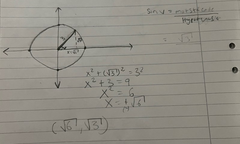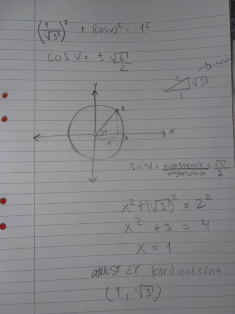 sin(v)=sqrt3/2 * (1)/(3) = sqrt3/6 vilket är y värdet , dvs y koordinaten