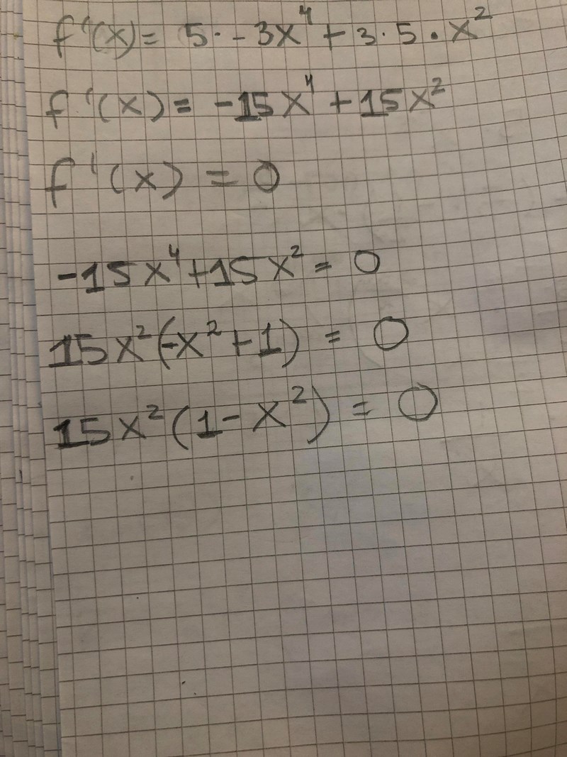Kurvan y= -3x^5+5x^3 har tre punkter med horisontell tangent.