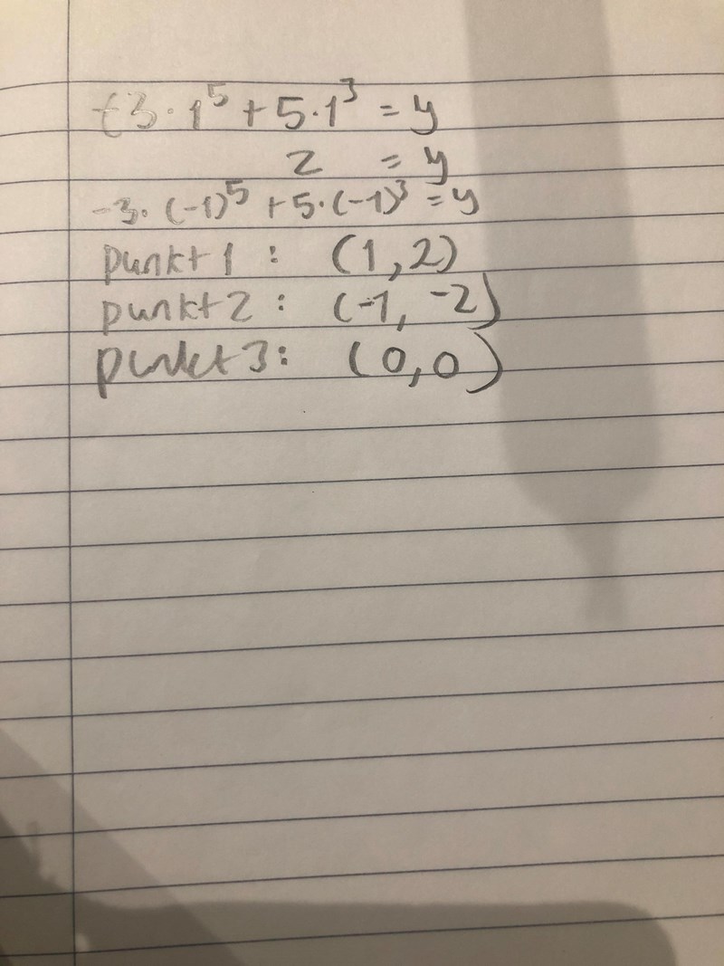 Kurvan y= -3x^5+5x^3 har tre punkter med horisontell tangent.