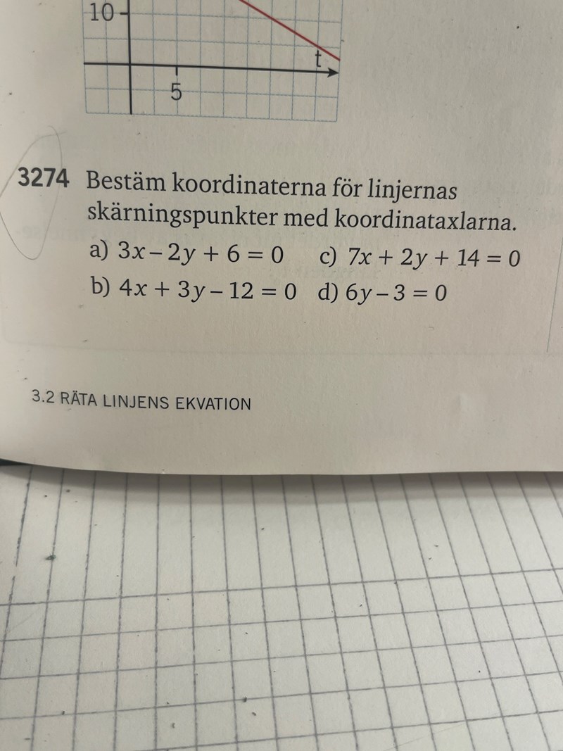 3274 a) jag löser koordinater för skärningspunkten av x-axel men när det kommer till y-axel blir det helt fel. Jag fattar inte om jag har gjort rätt men bör man inte alltid få y själv och som ett? Det är därför jag delar allt med två på a)