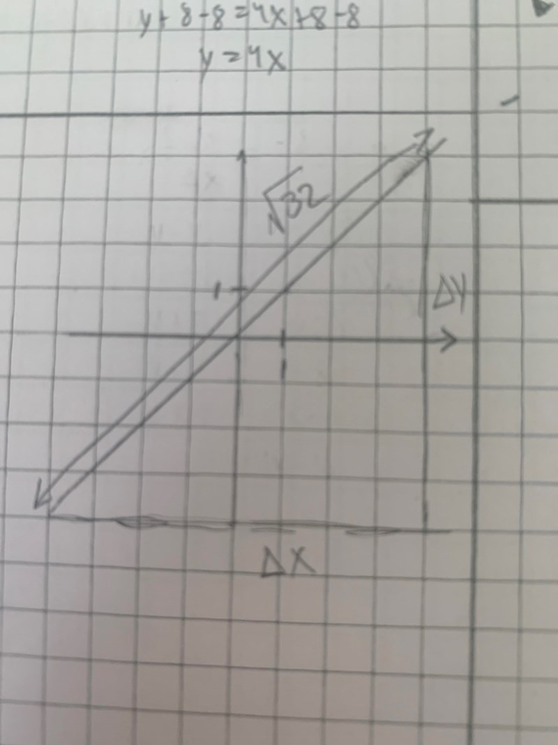 Så här? Jag uppfattade det som att längden på linjen är roten ur 32 gånger 2. Trodde att längden från origo och ut till en av kvadranterna var roten ur 32.
