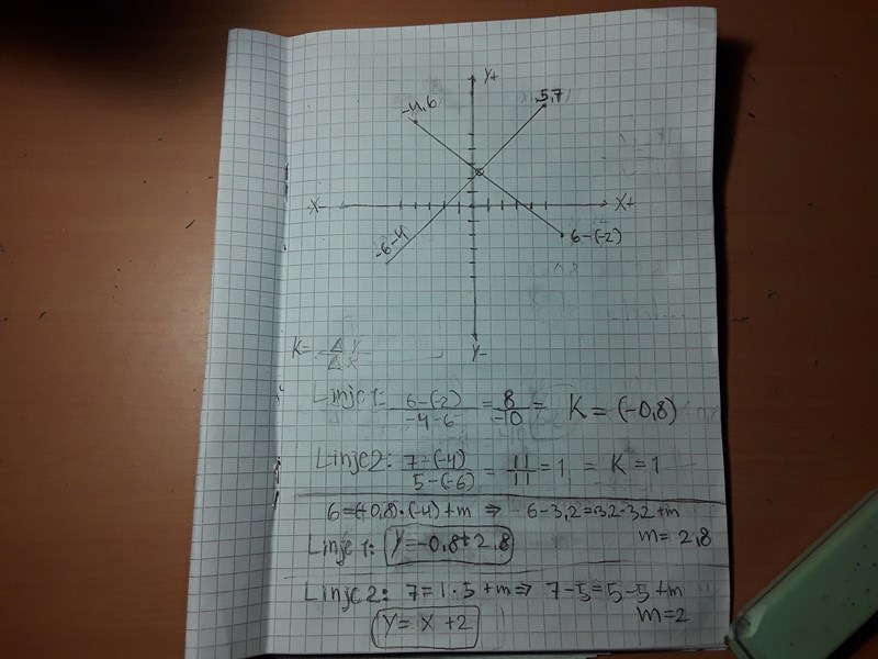 Har fått ut K och M värdet i linjerna och jag tror att jag räknat ut linjernas ekvation rätt.