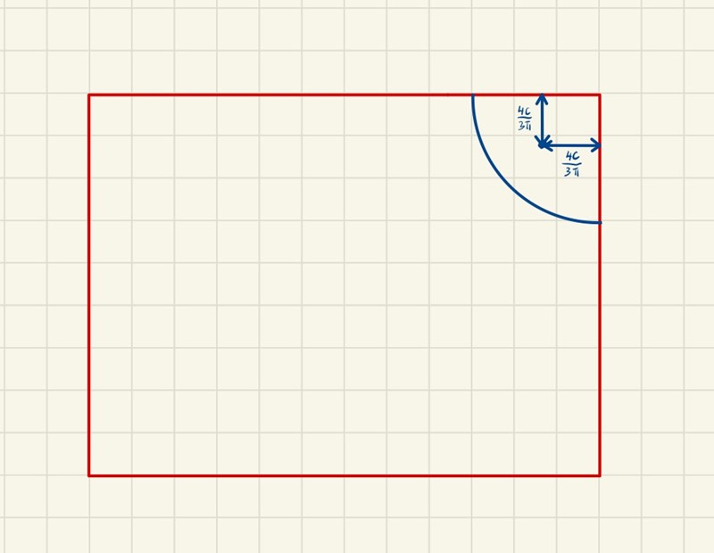 Jag prövade med att sätta in 4c/3pi direkt i sambandet som jag har men det fungerade inte. Jag kan alltså beräkna tyngdpunkten för hela rektangeln, och tyngdpunkten för en cirkelsektor med hörn i origo, men cirkelsektorn i uppgiften ligger inte i origo?