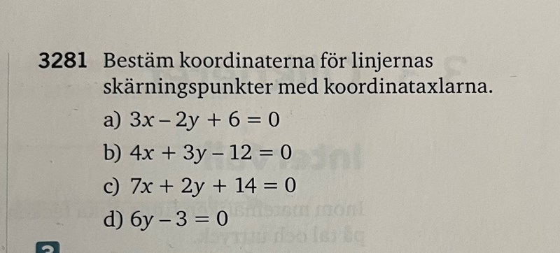 Bestäm koordinaterna för linjernas skärningspunkter med koordinataxlarna
