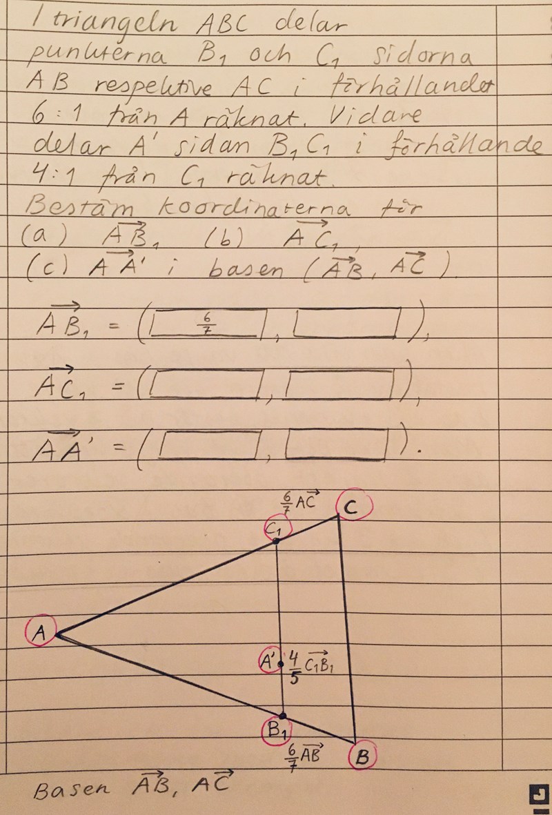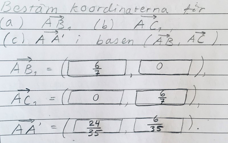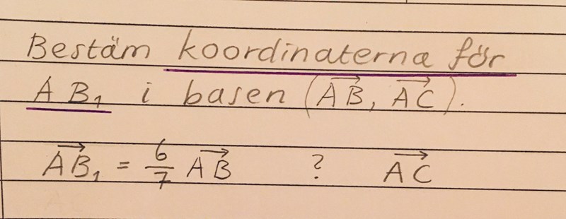 Bestäm koordinaterna i basen (AB, AC) i triangeln ABC