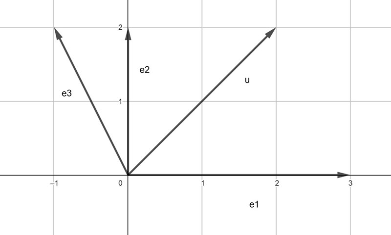 Men jag fastnar lite på det här med ortogonal projektion, i många fall kan man beräkna ortogonalprojektion mellan två vektorer utan att de är vinkelrät mot varandra ,men här måste de två basvektorerna i a) vara vinkelräta för att genomföra projektionsformeln , vilket förvirrar mig lite. Om man vill genomföra projektionsformeln i basen Y funkar det inte för att u och w är inte ortogonala. Tar man tex random vektorer som tex svarta bilden nedan så funkar det att använda projektionsformeln.