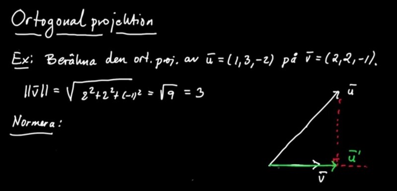 "Men jag fastnar lite på det här med ortogonal projektion, i många fall kan man beräkna ortogonalprojektion mellan två vektorer utan att de är vinkelrät mot varandra ,"