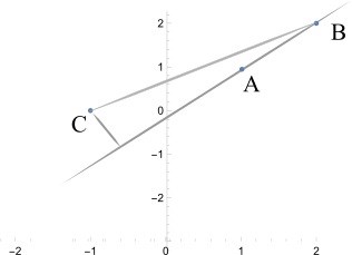 Bestäm kortaste avståndet från punkten C till linjen genom A och B?