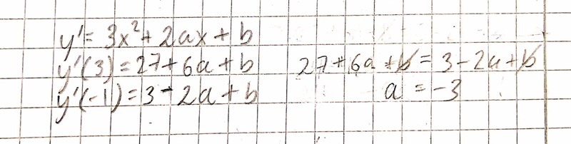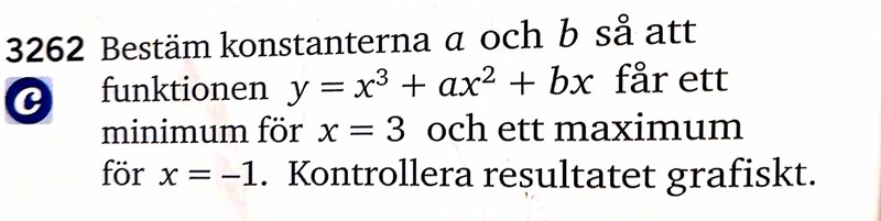 Bestäm kostanterna a och b så att funktionen y=x^3+ax^2+bx...