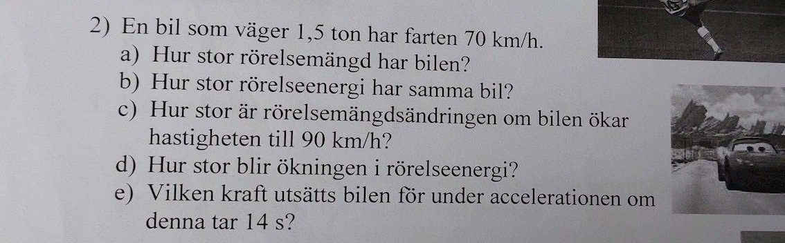 Hej där! Jag skulle behöva lite hjälp med e) uppgiften. Det gäller inte newtons andra lag och därför vet jag inte hur jag ska gå till väga annars. Tack på förhand!