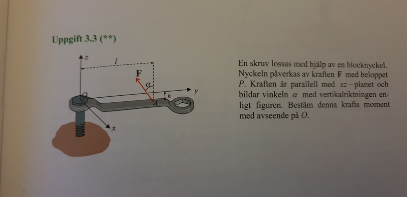 Du får göra samma komposantuppdelning av kraften F. y-komponenten är ju 0 (kraften ligger i xz-planet), medan x- och z-komponenterna beror på beloppet av F och vinkeln alfa. Hur?