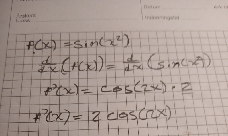 Pröva att derivera sin(x2). Vad får du då?