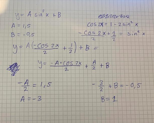 Där bör vi ha att y = A•sin2(0)+B, eller hur?