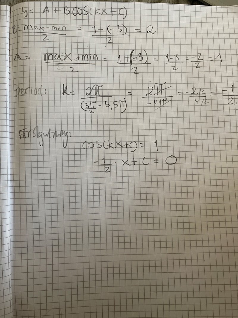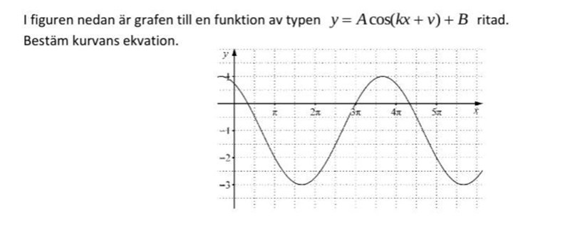 Jag förstod helt ärligt inte vad du menar här ”cos(0)=1 betyder att maxvärdet av kurvan uppnås då argumentet till cos() är 0. Du ska alltså hitta x-värdet där kurvan har ett maxima. ”