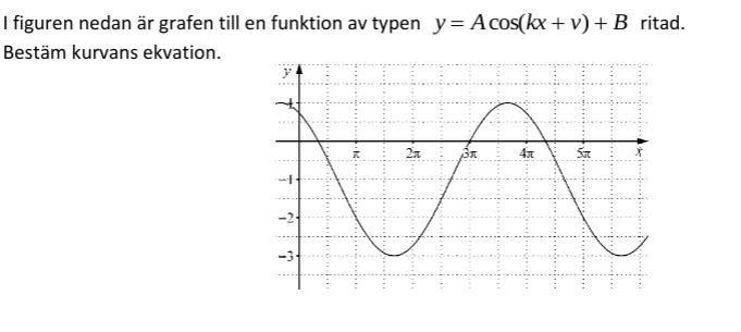 Bestäm kurvans ekvation av typen A cos(kx + v) + B.