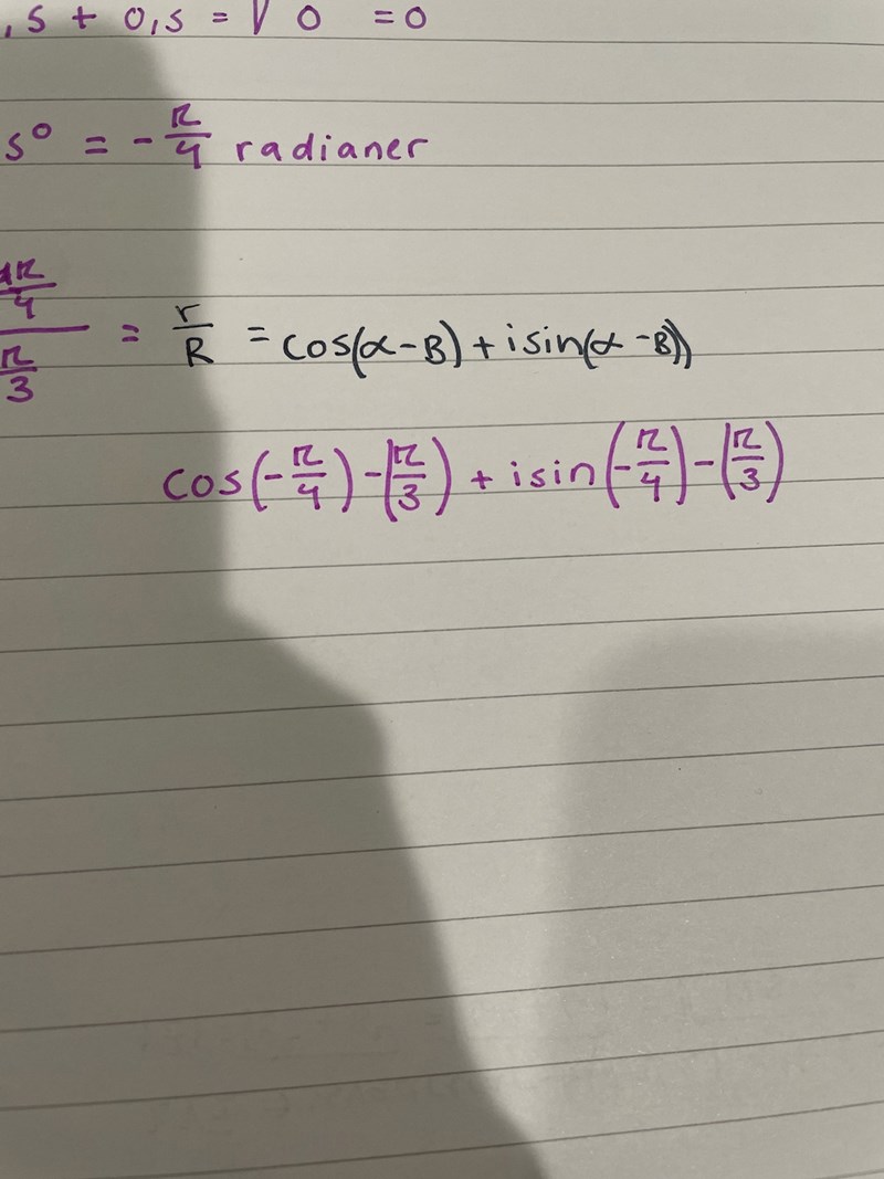 Jahaa nu fattar jag. Men är de allt? Att svaret är cos(5pi/12)+1sin(5pi/12) eller behöver jag göra något mer nu?