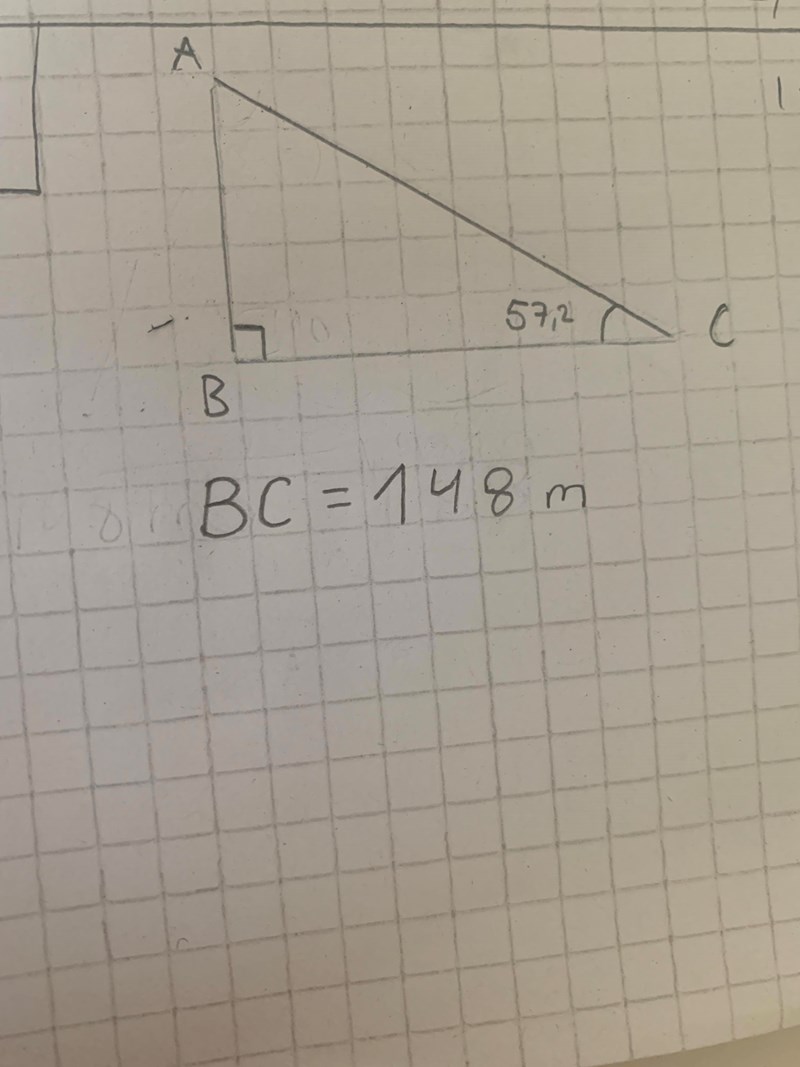 Som du noterat är det via tangensvärdet för vinkeln C som uppgiften kan lösas.