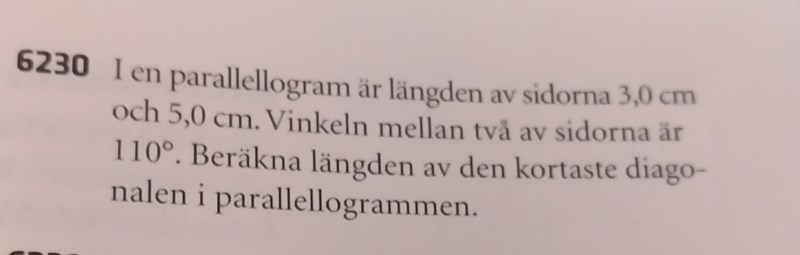 Laguna skrev:Kan du få fram den spetsiga vinkeln?
