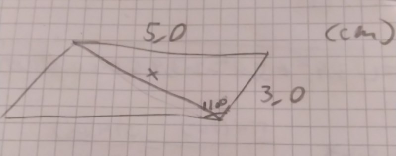 Jag har ritat men kommer inte längre. Vet dock att jag ska använda cosinussatsen.