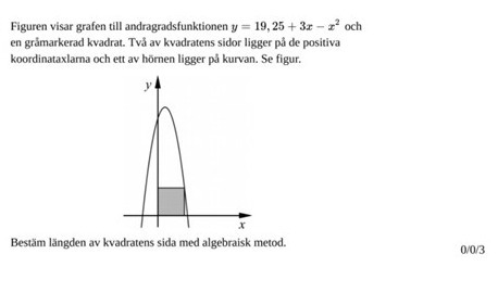 "bestäm längden av kvadratens sida med algebraisk metod"