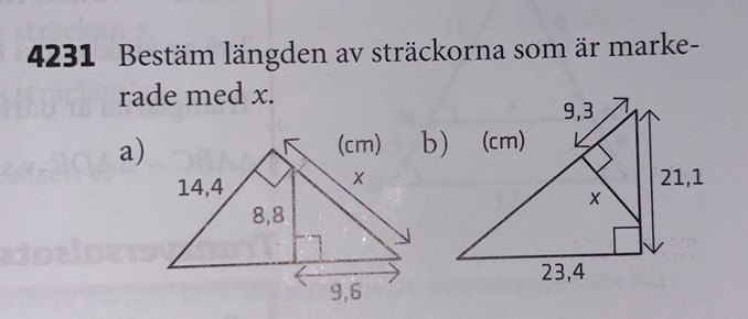 Det som jag gjort i uppgift a) är att räknat ut den lilla triangeln med hjälp av Pythagoras sats