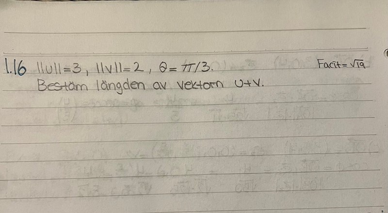 Bestäm längden av vektorn u+v
