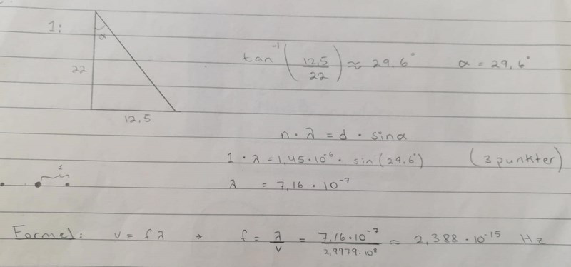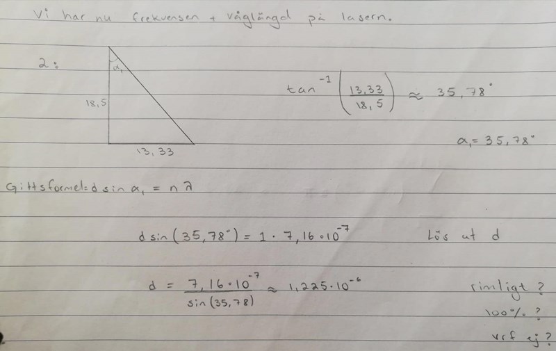 2. Ni fick 1225nm, vilket i alla fall är bra mycket längre än våglängden på ljuset.