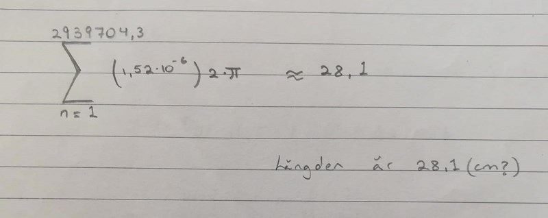 Också det som finns i parantesen i bild 4 är skillnaden mellan två spårs radier. Eftersom radierna varierar.