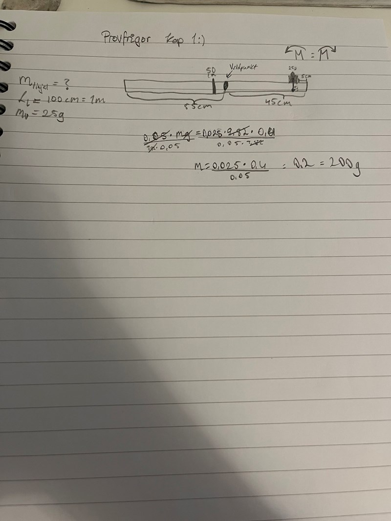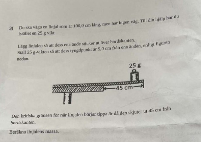 Bestäm linjalens massa som är 100 cm lång men har ingen våg.