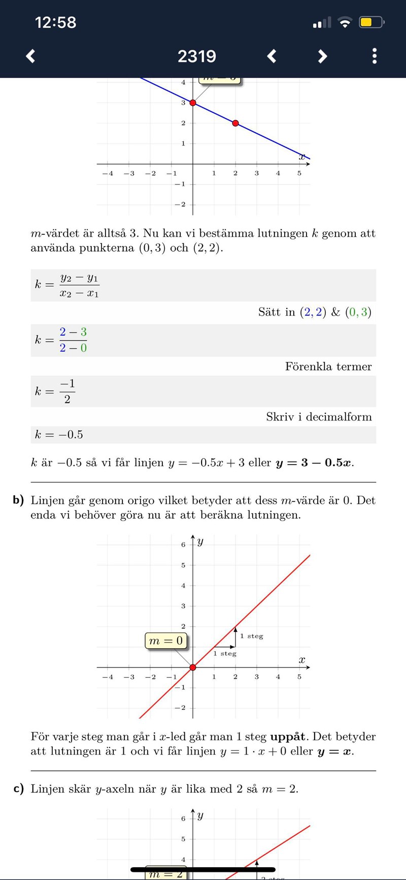 Jag förstår inte varför man räknar antal steg på b) på a kollade man vad x1y1 x2y2 blev och subtraherade sen dividerade och fick k men här på b gör man något helt annat varför? Kan jag inte räkna x1y1 och x2y2 då det käns bekvämare?