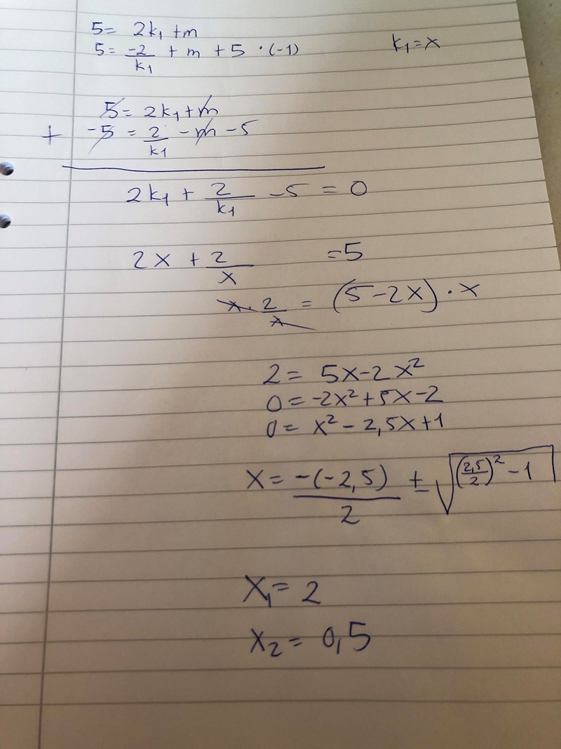 x1 = 2 ger k-värdena 2 och -1/2 för linjerna