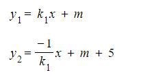 Två vinkelräta linjer skär varandra. Deras skärningspunkt är (2, 5). Avståndet mellan linjerna skärningspunkter med y-axeln är 5 (längdenheter). Bestäm linjernas ekvationer.