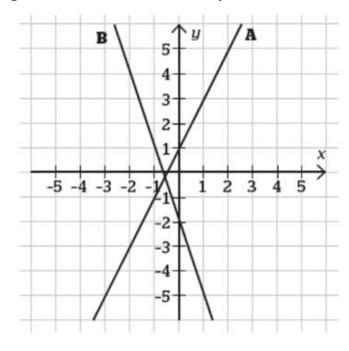 Var skär linje B y-axeln? Du kanske tittade på x-axeln.
