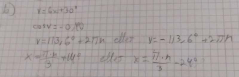 eller 6x+30 = -113,6 => x = - 23,9 +n*120