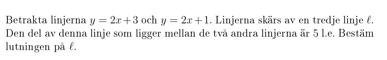 Vi vill att avståndet mellan dessa skärningspunkter ska vara 5 l.e.
