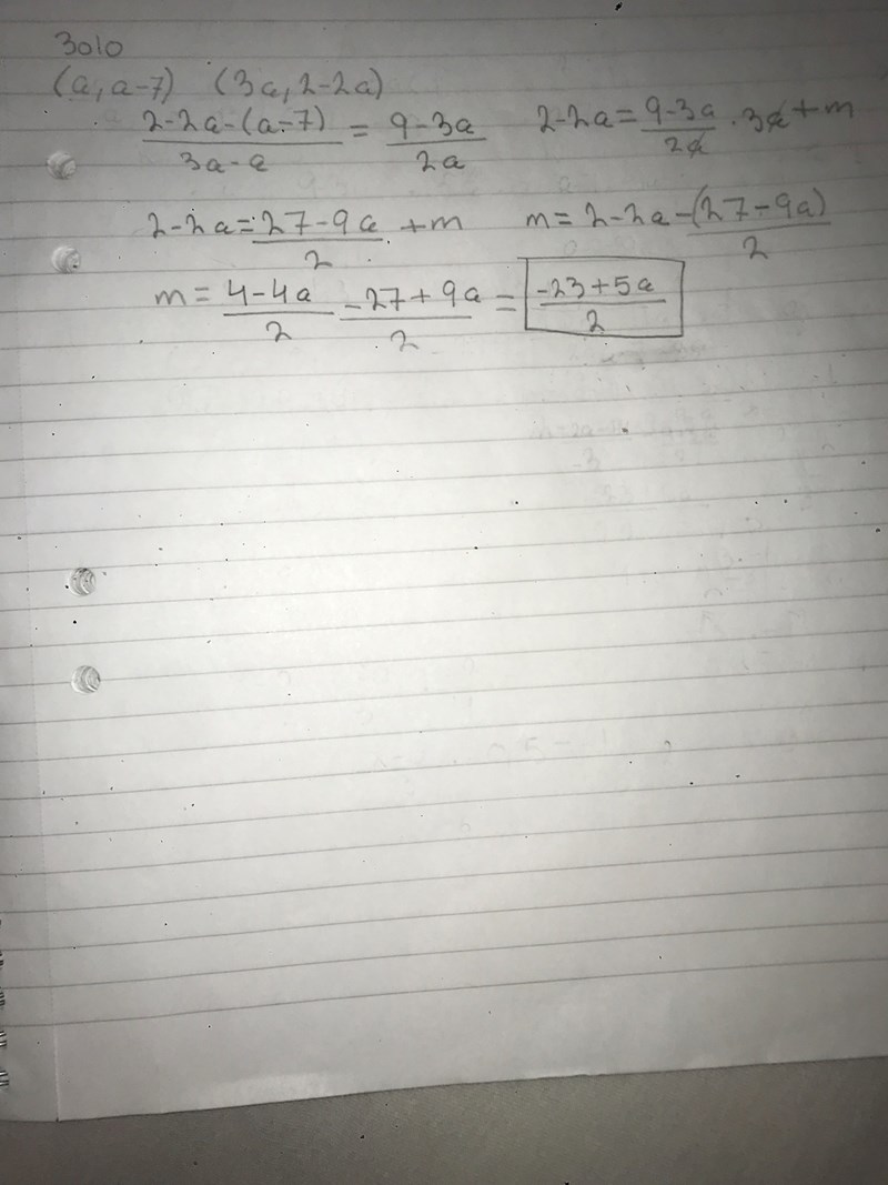 Vart har jag gjort fel, för får fram att m blir -23+5a/2 när m egentligen ska bli 23/3