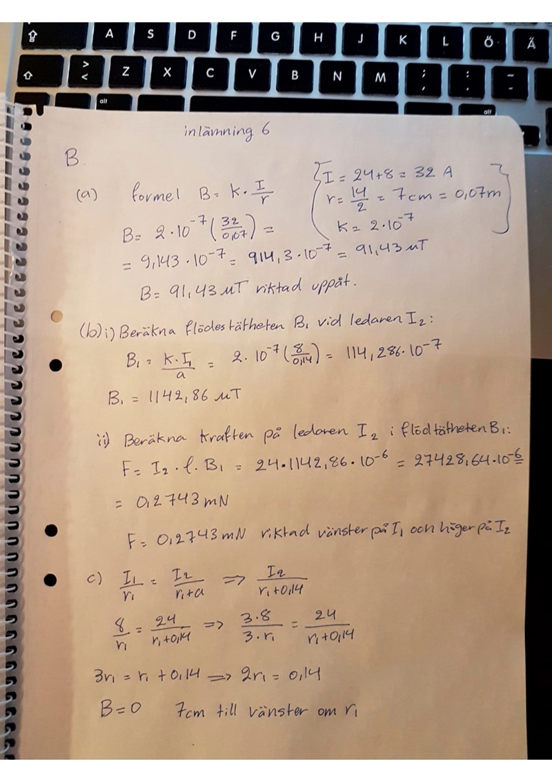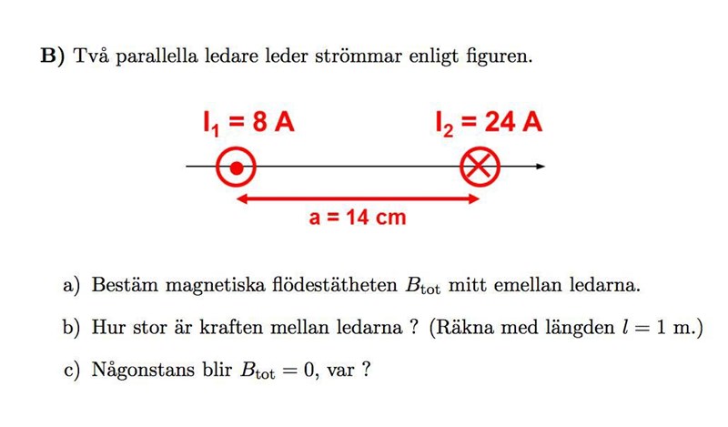 a) Man kan inte i allmänhet använda den totala strömmen för att beräkna B. Det är ett specialfall och därför behöver ni visa att det faktiskt går.