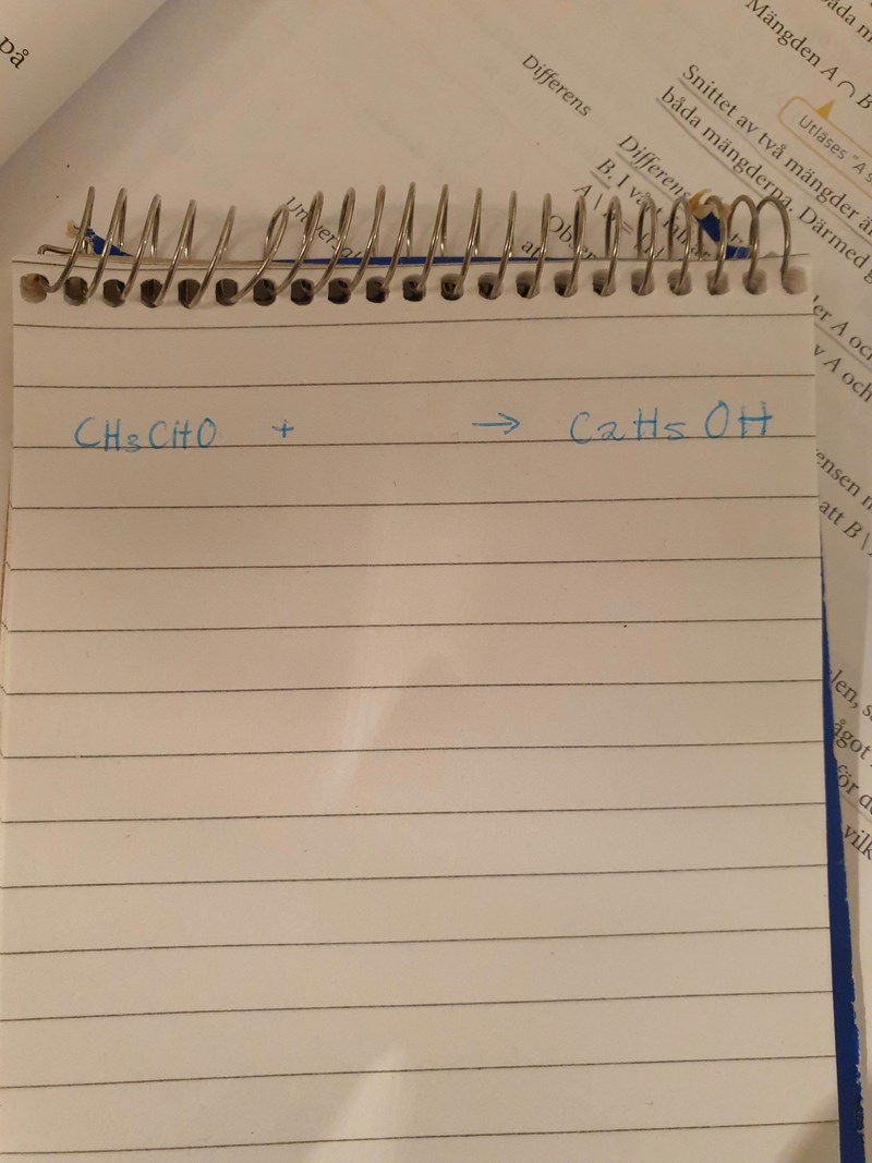 Reaktionsformeln känns fortfarande inte rätt. För att ställa upp så vill jag ju skriva hela formeln, men vad är det aldehyden reagerar med som blir etanol?