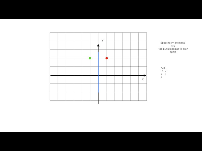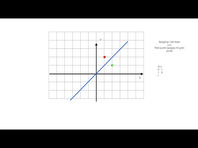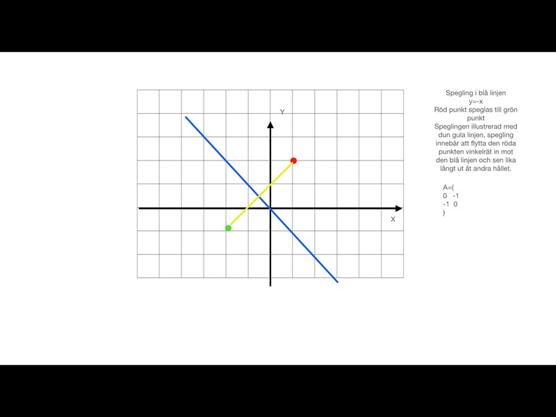 Tyvärr inte helt familjär med lösningsmetodiken du nämner, ett tag sen jag studerade detta. Helt klart är dock att matrisen A ovan speglar i y=-x. Detta betyder att punktens x och y-värde byts samt att de ändrar tecken. Rita gärna på rutpapper och kolla.