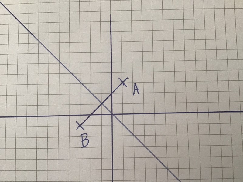 Punkten A (1,3) speglas i punkten B(-3,-1). Med linjen ville jag bara visa att de är vinkelräta vs y=-x.