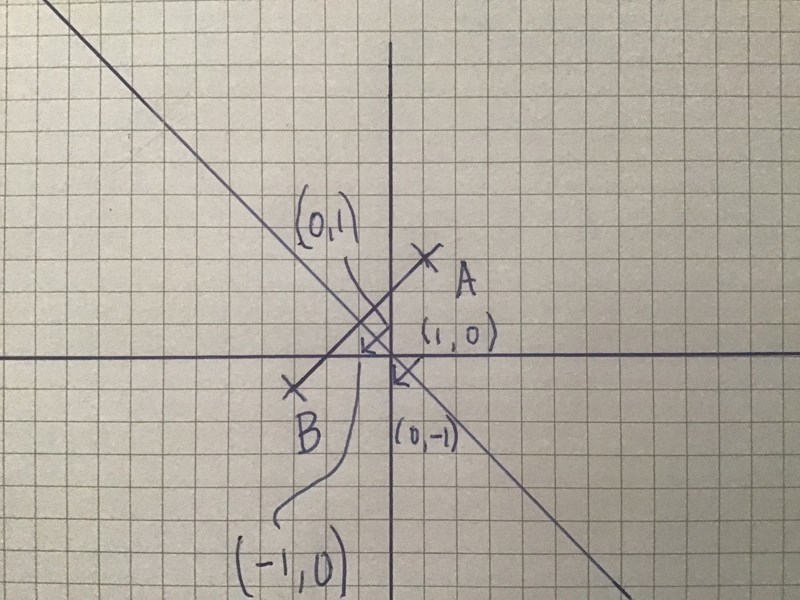 Analys skrev:I bilden ser du hur 1,0 och 0,1 speglas i y=-x. Se de små pilarna.