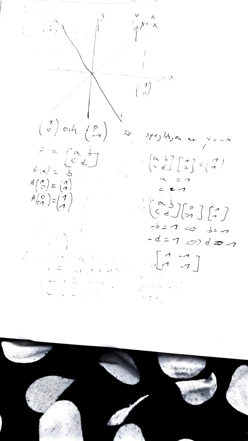 Hur avbildas 1,0 på 0,-1 och sen 0,1 på -1,0 ? Vad betyder att det avbildas? Jag har för mig spegelbilden av 1 0 är 1 0 och spegelbilden av 0 1 är 0 -1? Jag antar att det är just det du försöker säga mig.